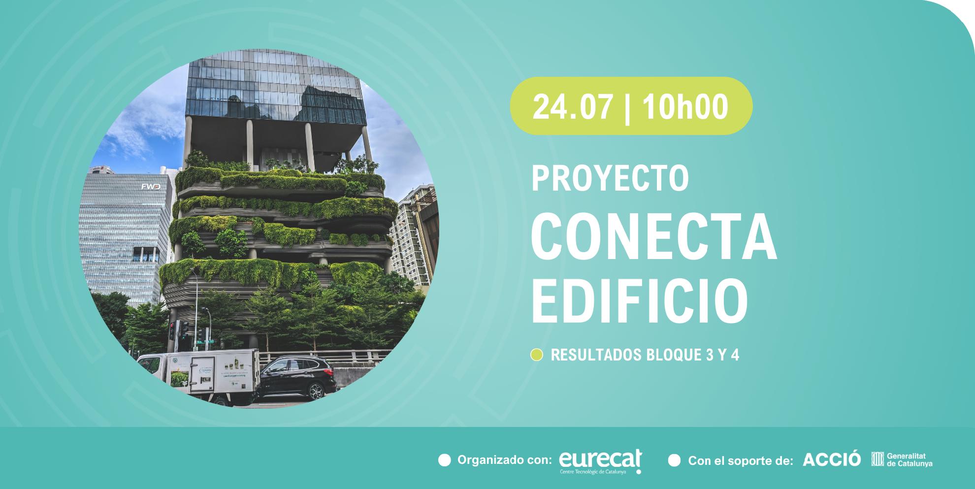El 24 de julio de 10:00 a 12:00 tendrá lugar la presentación de los resultados del Bloque 3 y 4 del Proyecto Conecta Edificio de manera híbrida en las oficinas de EURECAT en Barcelona (Calle Bilbao 72).